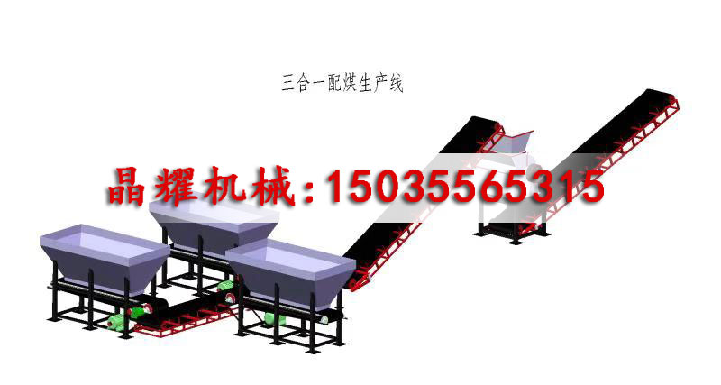 簡單的機(jī)械化配煤生產(chǎn)線的工藝流程:用裝載機(jī)將不同性質(zhì)的單種原料煤裝入不同的貯煤斗,通過圓盤給料機(jī)或箱式給煤機(jī)出煤閘門的調(diào)節(jié),控制各單種原料煤出煤量的大小,不同的煤經(jīng)滾筒篩或振動篩等篩分設(shè)備進(jìn)行篩分和混配,篩下物成為動力配煤,篩上物經(jīng)粉碎后摻入動力配煤中,然后作為成品貯存或外運(yùn)。一般中小型配煤場常用這種簡單的工藝流程。